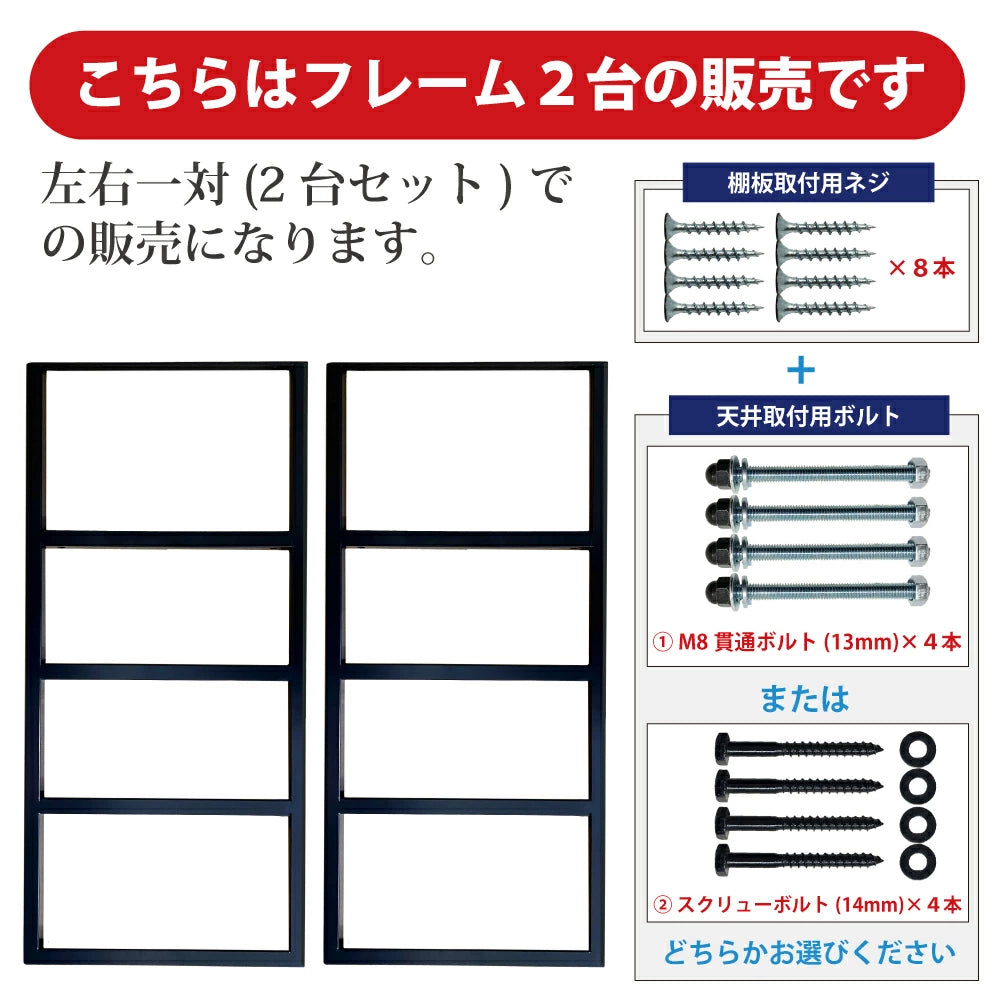 | 付属品 | ・ネジ:棚板固定用 M4 / 8個 ・天井取付用ボルト:M8貫通ボルト(13mm)、またはスクリューボルト(14mm)どちらかお選びください。 |